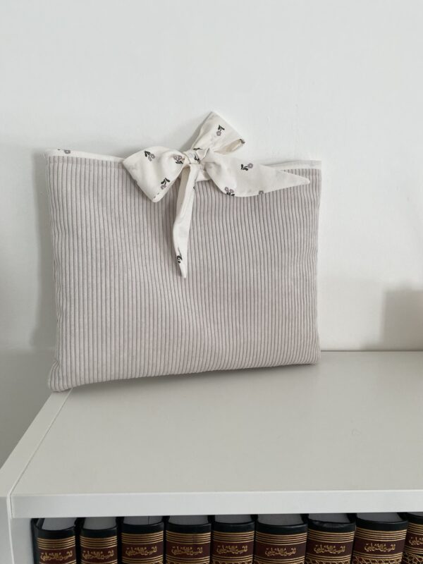 Protégez vos objets précieux avec notre pochette à nœud sur mesure, pensée pour accueillir votre Mushaf, mais aussi votre tablette ou votre ordinateur portable.
