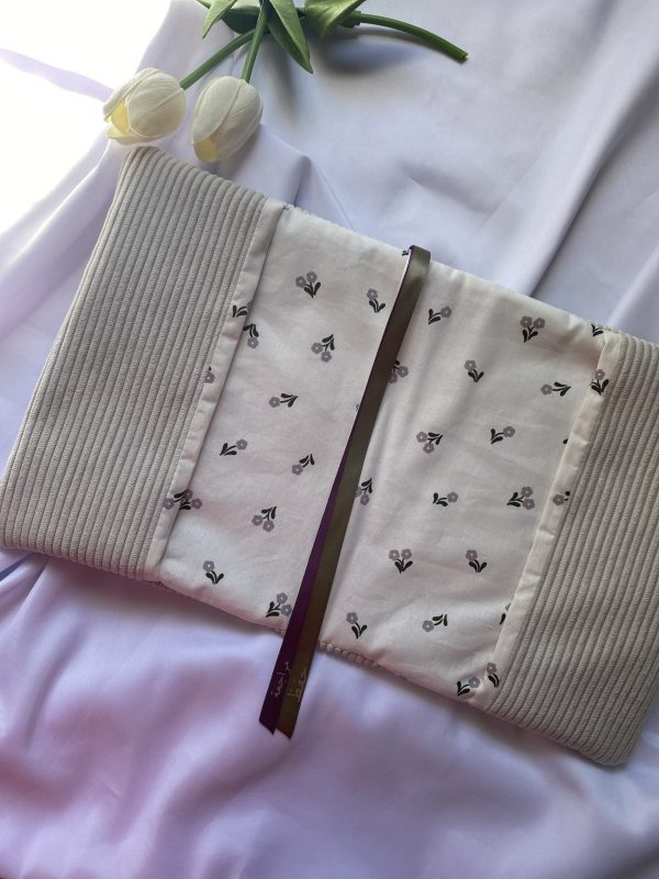 Velours côtelé Beige, intérieur Fleuri | Avec ou sans marque-pages