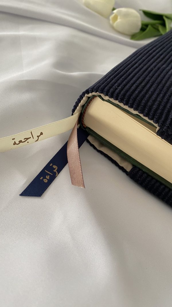 *L’option marque-pages inclus automatiquement 3 marques pages avec inscrit « apprentissage » ; »révision »; « lecture »; en arabe. Si vous en souhaitez plus ou moins, avec des inscriptions différentes, veuillez nous laisser une note lors de la prise de commande.