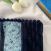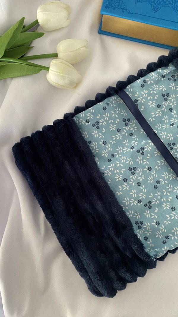 Fourrure Douce Bleu Nuit, intérieur Fleuri Bleu Clair | Avec ou sans marque-pages