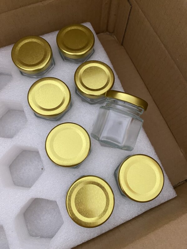 Mini pots de miel hexagonaux en verre de 1.5 Oz