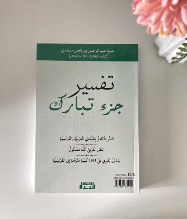 Cette exégèse du Qur’ân, ou Tafsîr, est l’explication détaillée de la partie Tabârak, qui regroupent 11 sourates du Qur’ân. Nous lui avons ajouté la Sourate al-Fâtiha pour son importance. Simple et accessible à tous, cette explication vous ouvrira les portes de la compréhension du Qur’ân. Un ouvrage indispensable à chaque foyer !
